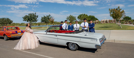 Arlette’s family gathered together for a wide panoramic group photo — one of the standout images that made it into her final album. We also took some fun portraits with the lowriders, and her chambelanes were definitely enjoying those moments! 🚗💙